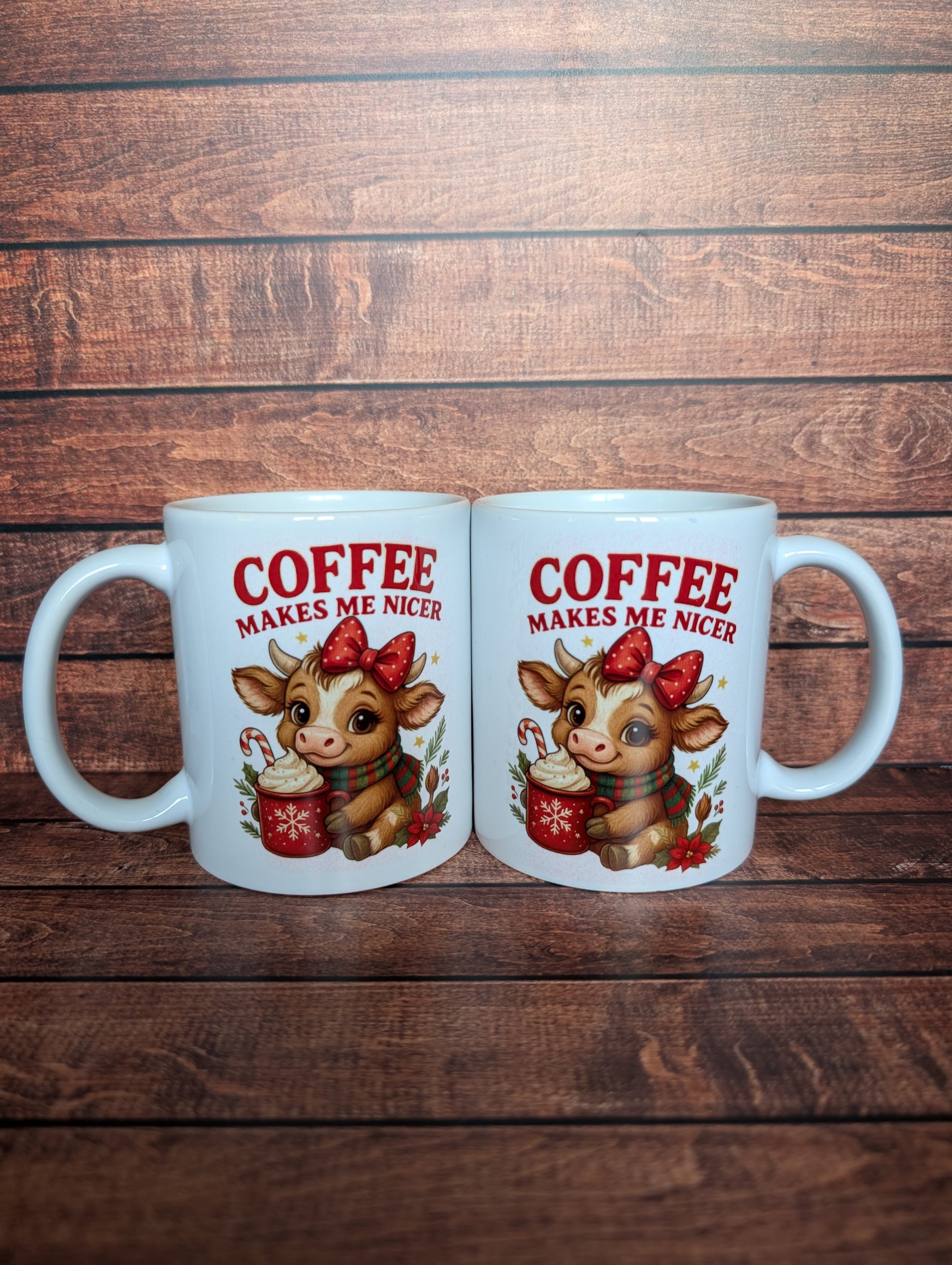 Brighten your mornings with the Coffee Makes Me Nicer Mug, featuring a charming highland cow that adds a cheeky touch to your coffee ritual. This playful mug is perfect for anyone who knows their best self emerges after the first sip. Enjoy your brew with a smile every day!